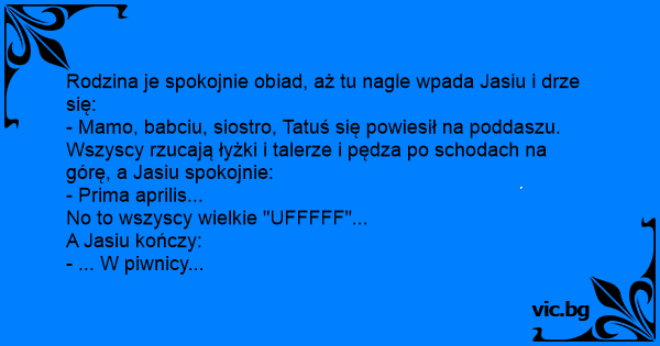 Rodzina je spokojnie obiad, aż tu nagle wpada Jasiu i drze się: