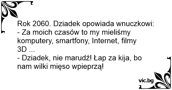 - Dziadek, nie marudź! Łap za kija, bo nam wilki mięso wpieprzą!