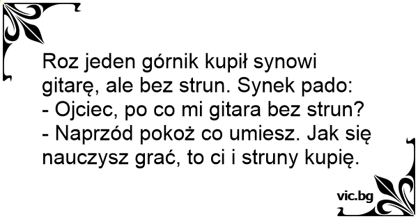 Roz jeden górnik kupił synowi gitarę, ale bez strun. Synek pado: