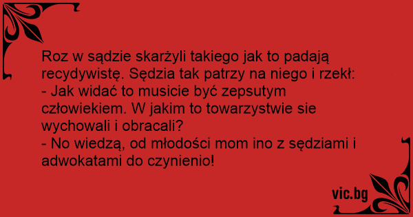 Roz w sądzie skarżyli takiego jak to padają recydywistę. Sędzia tak patrzy na niego i rzekł: