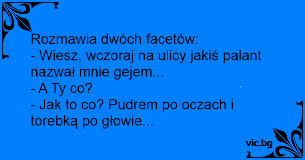 - Wiesz, wczoraj na ulicy jakiś palant nazwał mnie gejem...