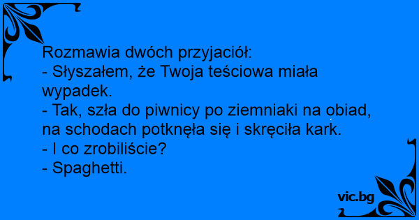 - Słyszałem, że Twoja teściowa miała wypadek.