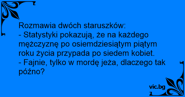 - Statystyki pokazują, że na każdego mężczyznę po osiemdziesiątym piątym roku życia przypada po siedem kobiet.