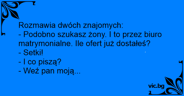 - Podobno szukasz żony. I to przez biuro matrymonialne. Ile ofert już dostałeś?