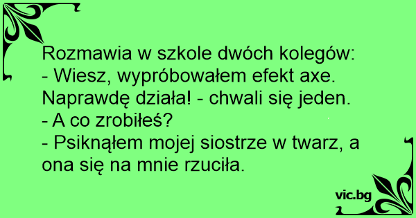 - Wiesz, wypróbowałem efekt axe. Naprawdę działa! - chwali się jeden.