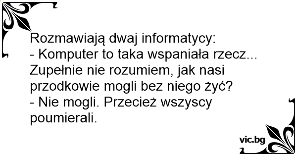 - Komputer to taka wspaniała rzecz... Zupełnie nie rozumiem, jak nasi przodkowie mogli bez niego żyć?