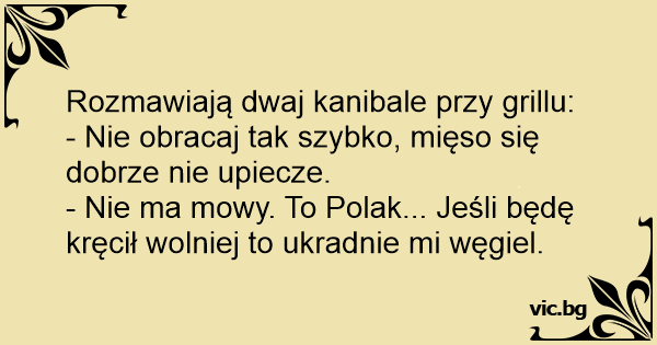 Rozmawiają dwaj kanibale przy grillu: