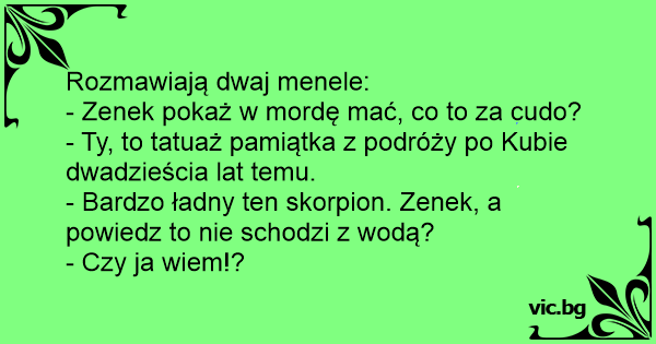 - Bardzo ładny ten skorpion. Zenek, a powiedz to nie schodzi z wodą?