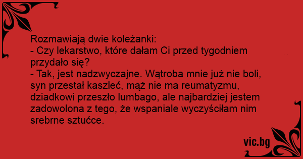 - Czy lekarstwo, które dałam Ci przed tygodniem przydało się?