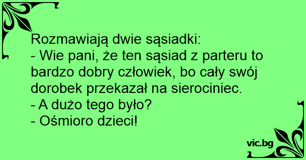 - Wie pani, że ten sąsiad z parteru to bardzo dobry człowiek, bo cały swój dorobek przekazał na sierociniec.
