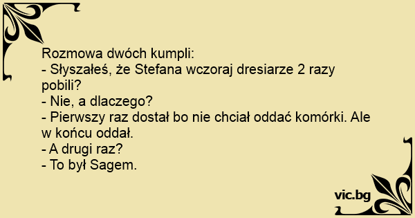 - Słyszałeś, że Stefana wczoraj dresiarze 2 razy pobili?