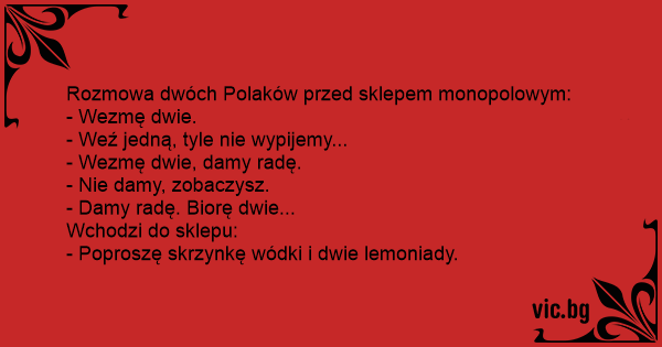 Rozmowa dwóch Polaków przed sklepem monopolowym: