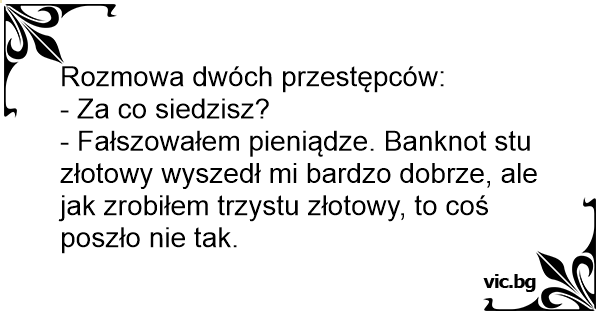 - Fałszowałem pieniądze. Banknot stu złotowy wyszedł mi bardzo dobrze, ale jak zrobiłem trzystu złotowy, to coś poszło nie tak.