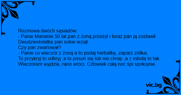 - Panie co wieczór z żoną a to podaj herbatkę, zaparz ziółka,
