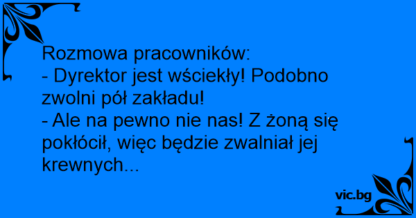 - Ale na pewno nie nas! Z żoną się pokłócił, więc będzie zwalniał jej krewnych...