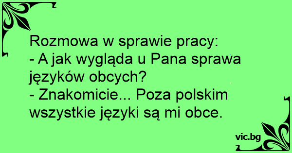 - Znakomicie... Poza polskim wszystkie języki są mi obce.