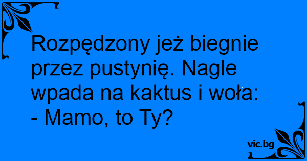 Rozpędzony jeż biegnie przez pustynię. Nagle wpada na kaktus i woła: