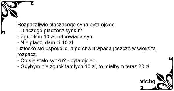 - Zgubiłem 10 zł, odpowiada syn.