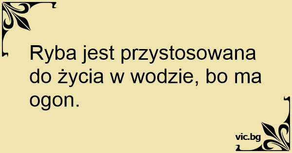 Ryba jest przystosowana do życia w wodzie, bo ma ogon.