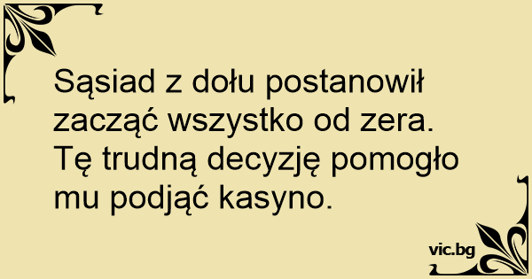 Sąsiad z dołu postanowił zacząć wszystko od zera. Tę trudną decyzję pomogło mu podjąć kasyno.