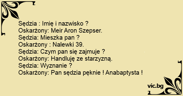 Oskarżony: Pan sędzia pęknie ! Anabaptysta !