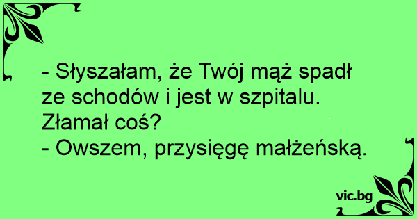 - Słyszałam, że Twój mąż spadł ze schodów i jest w szpitalu. Złamał coś?