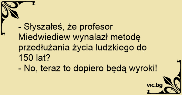 - Słyszałeś, że profesor Miedwiediew wynalazł metodę przedłużania życia ludzkiego do 150 lat?