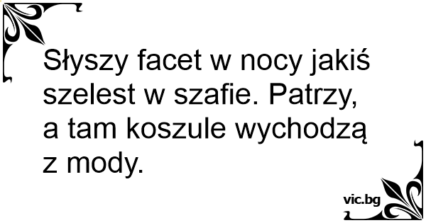 Słyszy facet w nocy jakiś szelest w szafie. Patrzy, a tam koszule wychodzą z mody.