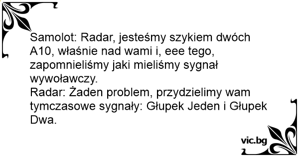 Samolot: Radar, jesteśmy szykiem dwóch A10, właśnie nаd wami i, eee tego, zapomnieliśmy jaki mieliśmy sygnał wywoławczy.