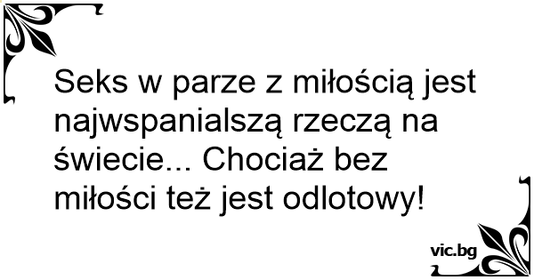 Sекs w parze z miłością jest najwspanialszą rzeczą na świecie... Chociaż bez miłości też jest odlotowy!