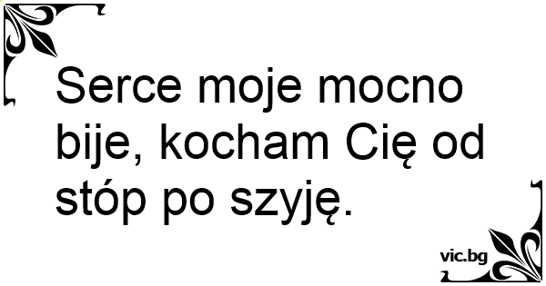 Serce moje mocno bije, kocham Cię od stóp po szyję.