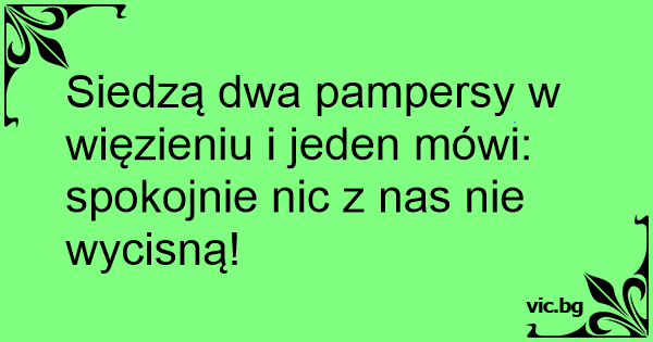 Siedzą dwa pampersy w więzieniu i jeden mówi: spokojnie nic z nas nie wycisną!