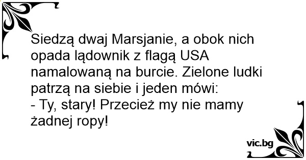 Siedzą dwaj Marsjanie, a obok nich opada lądownik z flagą USA namalowaną na burcie. Zielone ludki patrzą na siebie i jeden mówi: