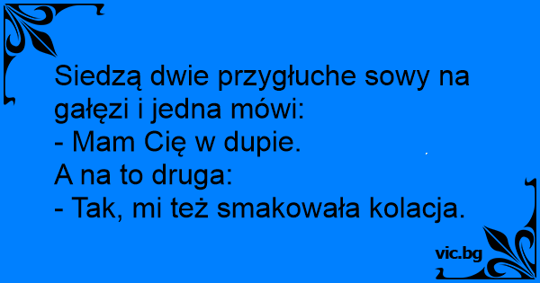 Siedzą dwie przygłuche sowy na gałęzi i jedna mówi: