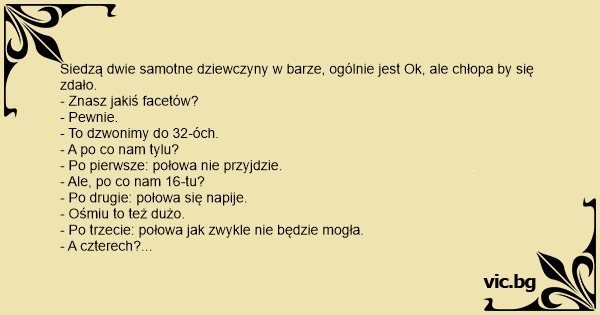 Siedzą dwie samotne dziewczyny w barze, ogólnie jest Ok, ale chłopa by się zdało.