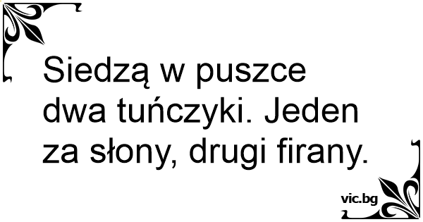 Siedzą w puszce dwa tuńczyki. Jeden za słony, drugi firany.
