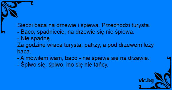 - A mówiłem wam, baco - nie śpiewa się na drzewie.