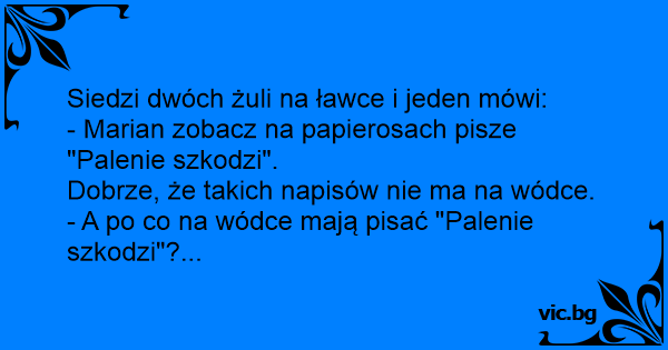 - A po co na wódce mają pisać "Palenie szkodzi"?...