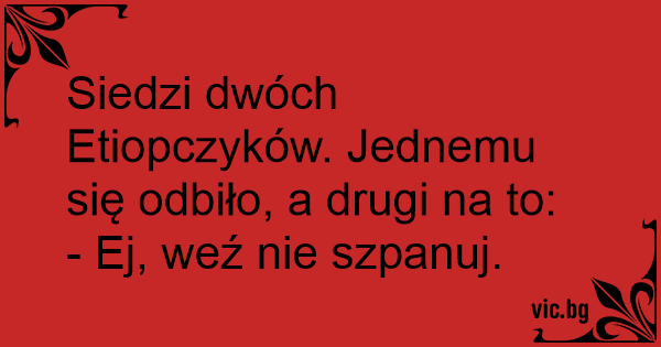 Siedzi dwóch Etiopczyków. Jednemu się odbiło, a drugi na to: