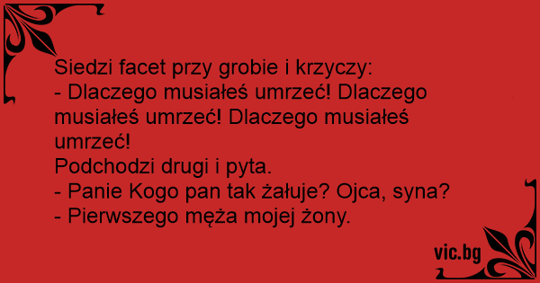 Mies itkeskeli lohduttomasti haudan äärellä ja lausui: - Miksi, voi miksi sinun piti kuolla? Paikalle saapui pappi, joka kuultuaan miehen puheen meni lohduttelemaan: - Veliseni kaikkien pitää...