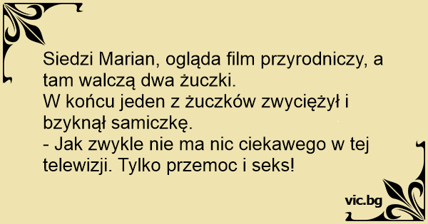 Siedzi Marian, ogląda film przyrodniczy, a tam walczą dwa żuczki.