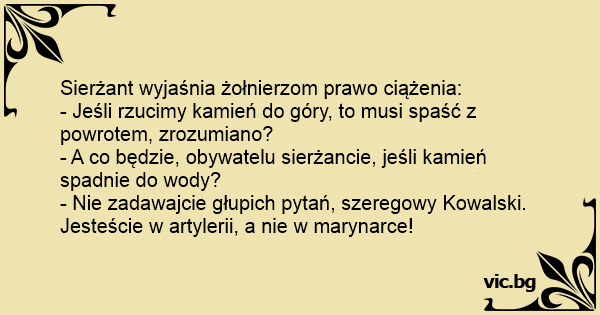 - Nie zadawajcie głupich pytań, szeregowy Kowalski. Jesteście w artylerii, a nie w marynarce!