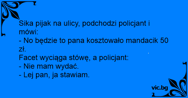Sika pijak na ulicy, podchodzi policjant i mówi: