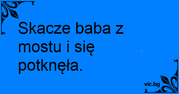 Skacze baba z mostu i się potknęła.