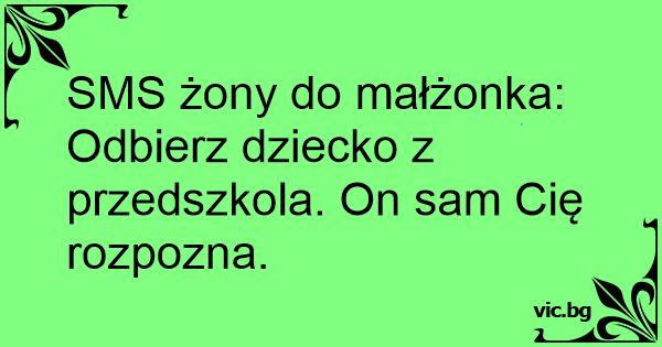 SMS żony do małżonka: Odbierz dziecko z przedszkola. On sam Cię rozpozna.