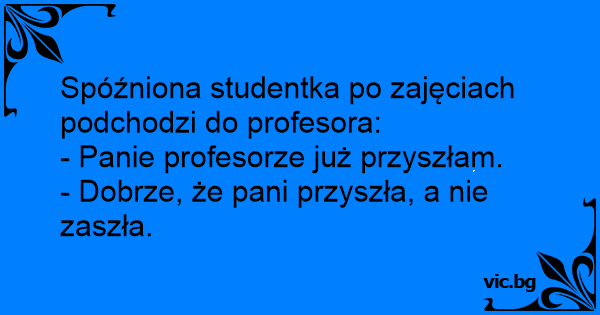 Spóźniona studentka po zajęciach podchodzi do profesora: