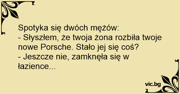 - Słyszłem, że twoja żona rozbiła twoje nowe Porsche. Stało jej się coś?