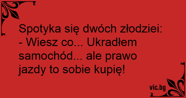 - Wiesz co... Ukradłem samochód... ale prawo jazdy to sobie kupię!