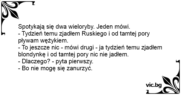 Spotykają się dwa wieloryby. Jeden mówi.