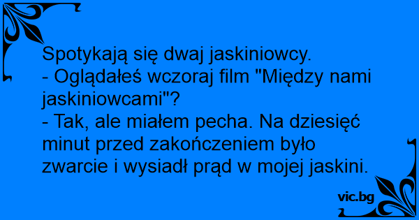 - Tak, ale miałem pecha. Na dziesięć minut przed zakończeniem było zwarcie i wysiadł prąd w mojej jaskini.